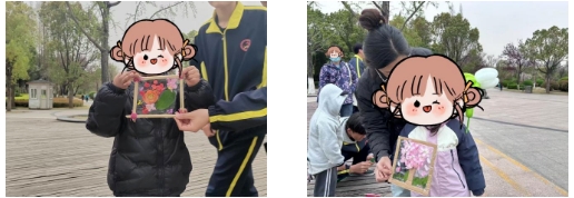 活动尾声,孩子们在公园中开启“寻找春天”之旅。他们收集花瓣、树叶和树枝,拼贴成一幅幅充满想象力的画作。相框之内是他们收集的春天,相框之外,他们的笑脸是春天最美的风景。艺术创作成为他们与世界对话的桥梁。