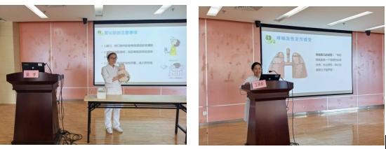 活动开始,呼吸科慢病管理护士王珍珍、陆睿分别针对哮喘患儿的健康教育、常用吸入装置的使用方法以及哮喘患儿的自我监测方法做了详细的讲解及示范。