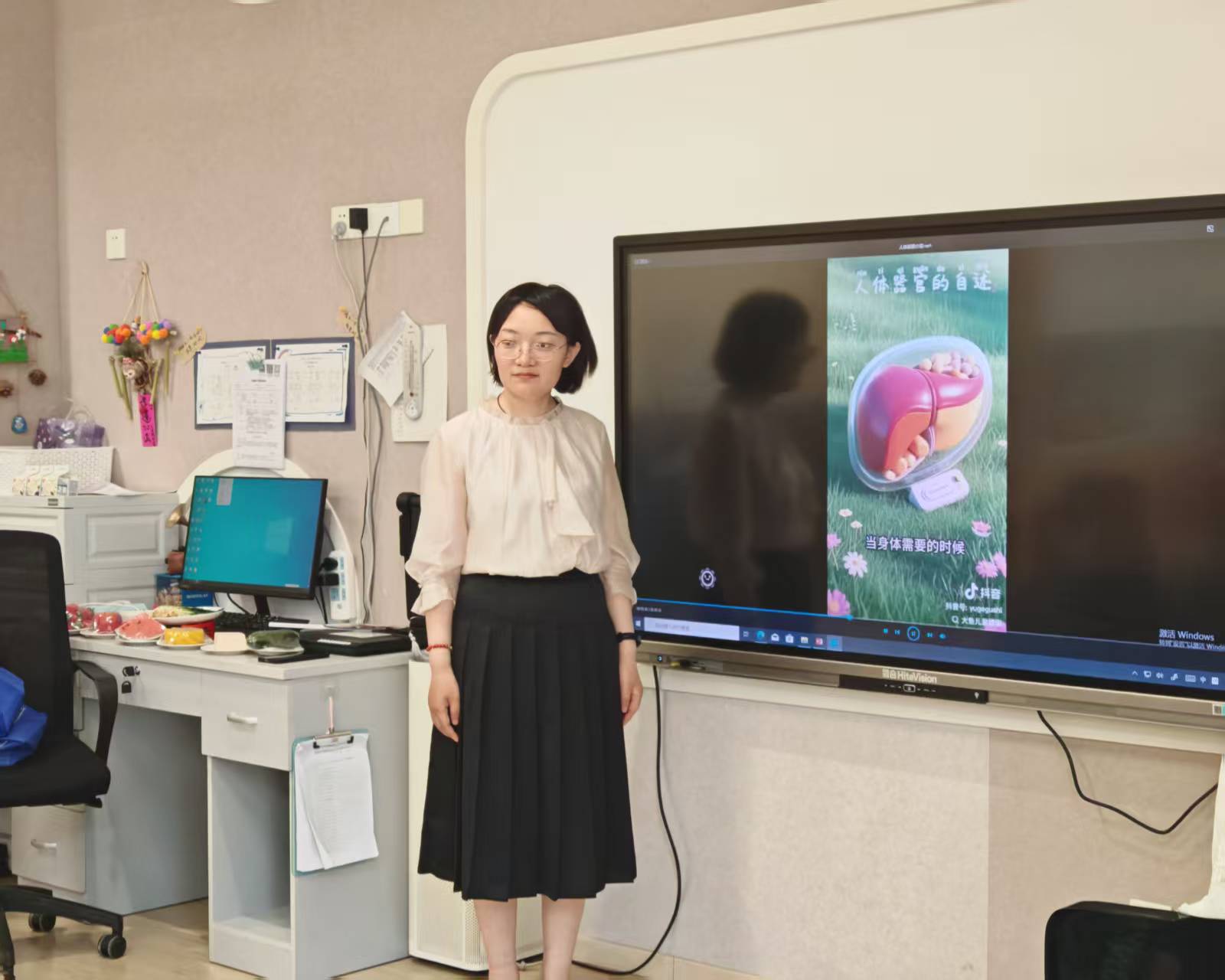 活动伊始,王卫星老师以一段精心制作的视频动画吸引了孩子们的目光。她用生动的画面和通俗的语言,向小朋友们展示了人体主要器官的功能及食物在体内的消化过程。动画中“小胃战士”、“营养小精灵”等卡通角色引发阵阵欢笑,孩子们在轻松的氛围中理解了“吃饭是为了给身体加油”的道理。