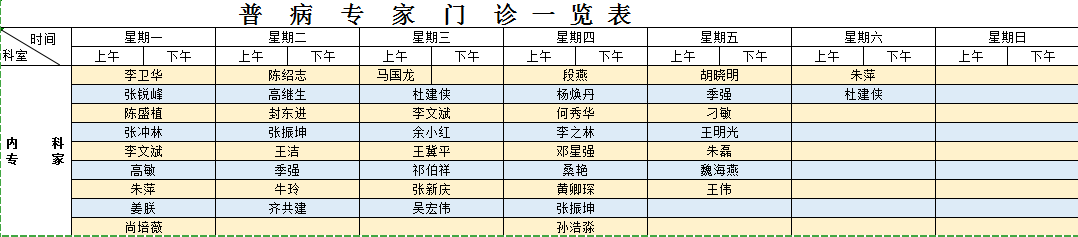 1、调整普通内科专家门诊与普通内科门诊,共同设置在一楼南侧,专家门诊排班调整如下。