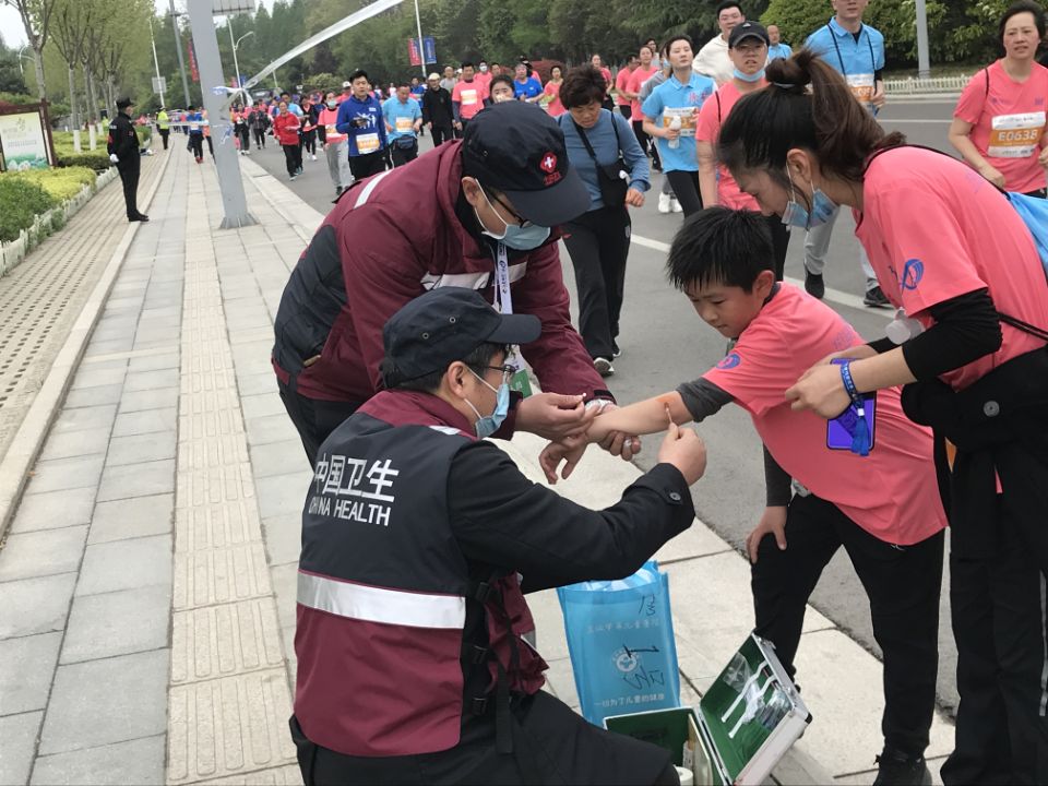 比赛当日,我院医疗保障队员统一着装并携带急救箱、AED机等应急物品,按照市卫健委统一要求按时到达赛道指定位置,并按照统一部署给医学志愿者进行了培训。本次保障工作我院共救治马拉松选手400余人,所有伤员均得到了及时有效的医疗救治,圆满完成了马拉松比赛的医疗保障任务。