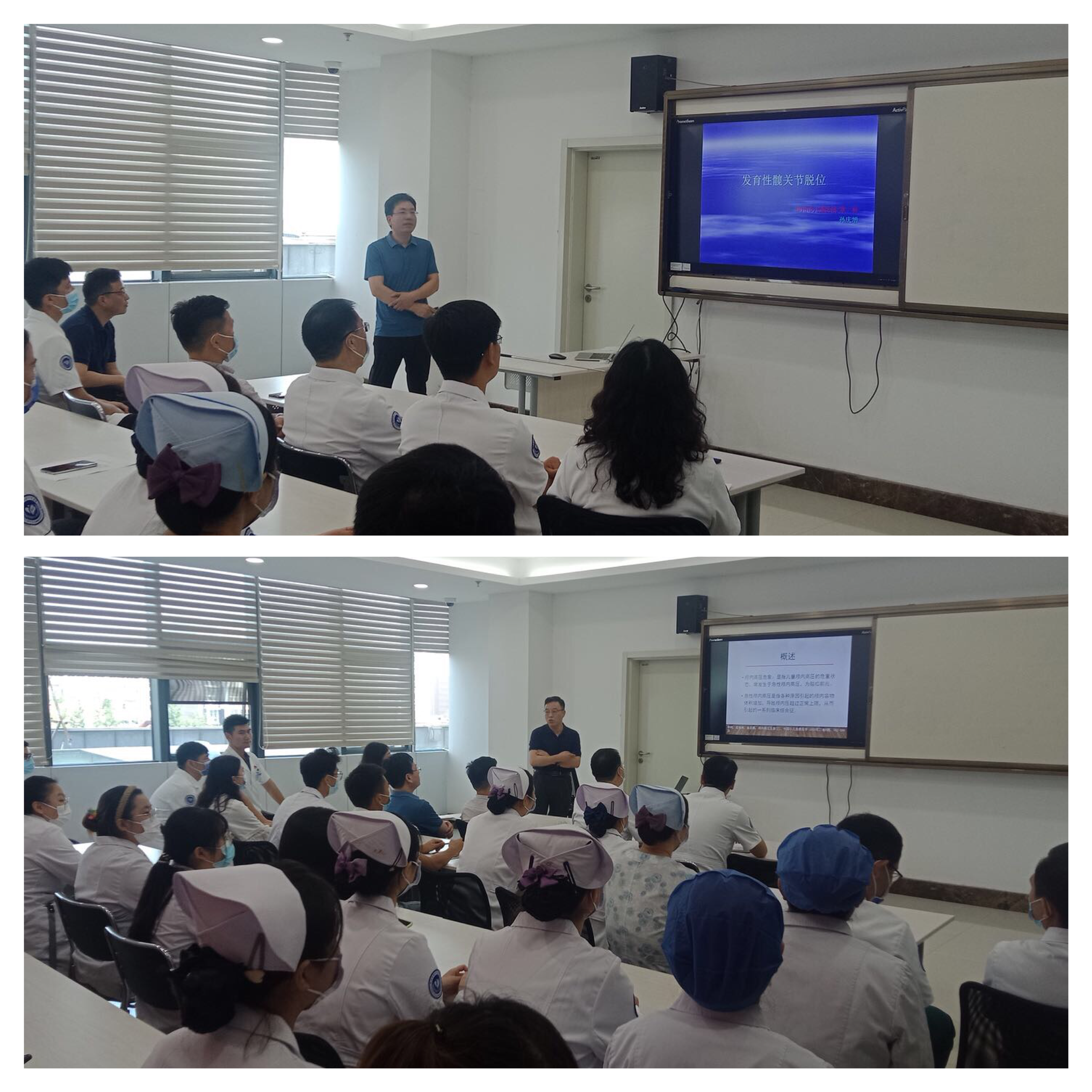 活动现场,徐州市儿童医院重症医学科的祁伯祥主任结合自身多年专业优势、临床经验,以儿童颅内高压危象的救治为主题,讲授了其相关的常见原因、临床表现、危重情况评估、检测以及治疗管理等内容。在基层医院儿外科诊疗相对薄弱的情况下,为了使当地医师对儿童的髋关节疾病得到足够认识,骨一科的孙庆增主任则向大家详细介绍了发育性髋关节脱位的相关内容。医师们现场提问,专家互动答疑,气氛热烈。
