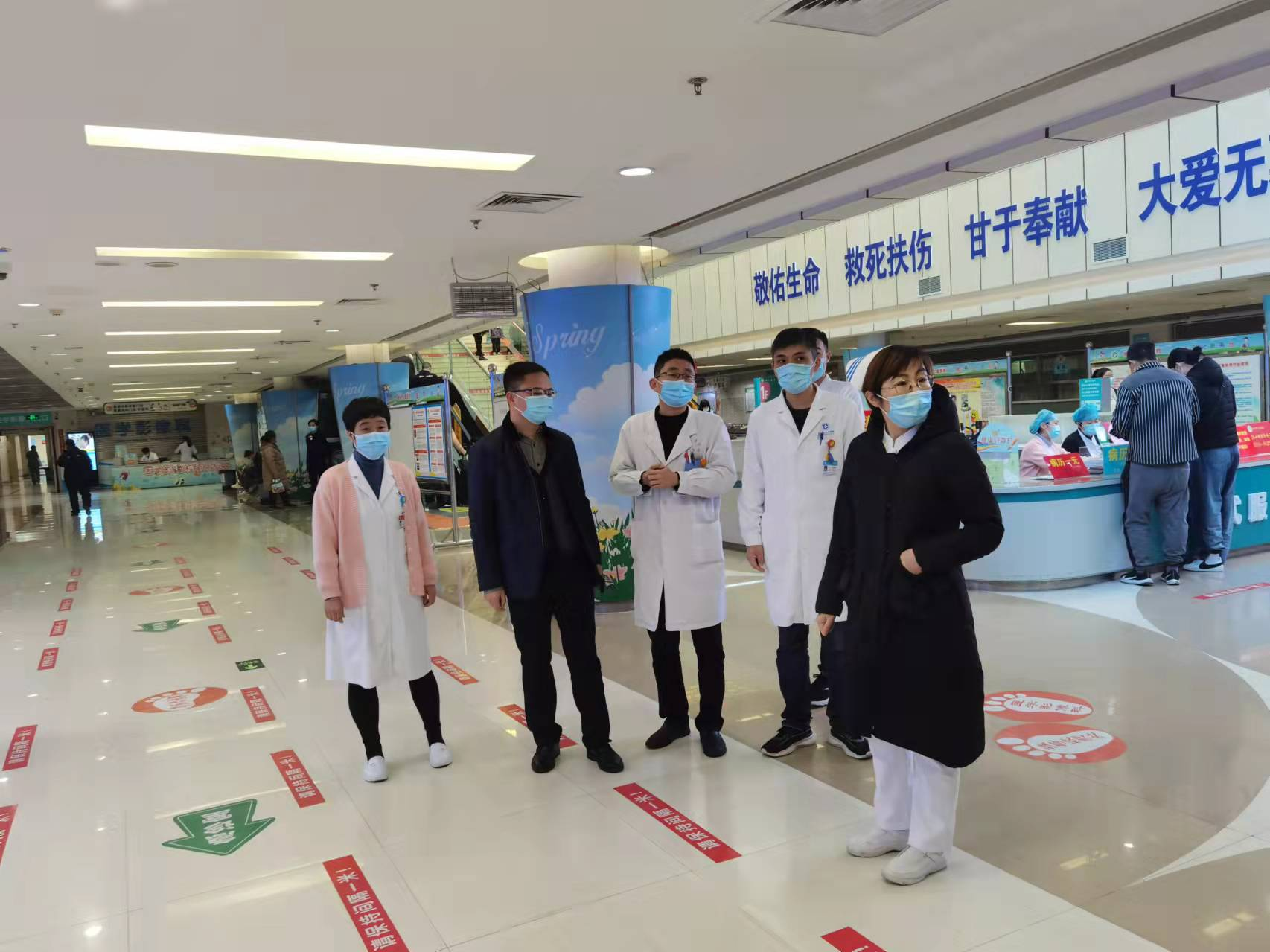 燕书记一行先后查看了东院入口、西院入口、门诊等部门疫情防控工作情况,就各部门的病人入口管理、人员排查、个人防护、风险区等方面逐一进行检查指导,排查疫情防控隐患,对工作中存在的不足、短板进行梳理,提出整改方案。燕书记要求门诊入口每一位工作人员都要强化责任担当,强化防控意识,充分发挥预检分诊“哨点”作用,严格出入人员管理,毫不松懈抓实抓细各项防控工作,从而营造安全的就医环境,全力保障患儿的生命安全与身体健康。
