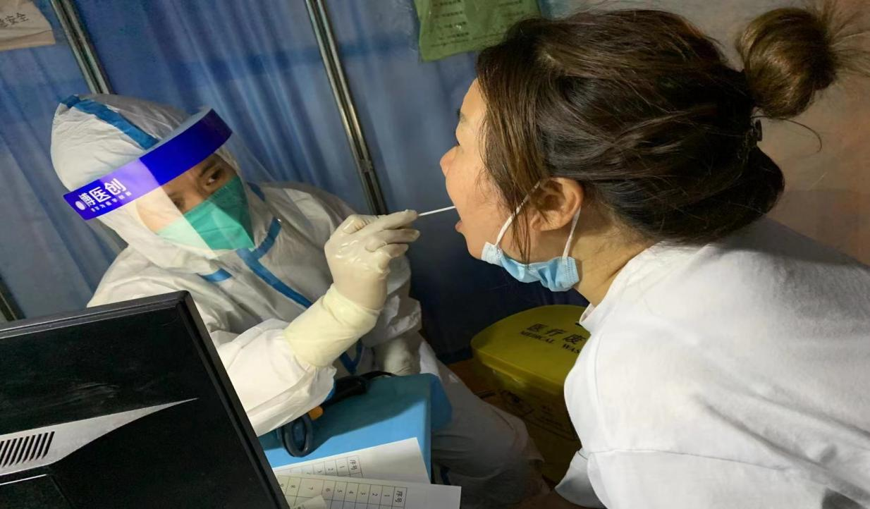 2021年,面对疫情的卷土重来,作为核酸检测定点单位,在院领导和护理部的号召下迅速成立对外核酸采样护理团队,由4名男护士和5名女护士自愿报名组成,输液室护士长兼管。实行24小时服务。由于受到硬件条件限制,面对大量的核酸采样量,避免群众聚集,在院感科的指导下,信息科、总务科的大力支持下,她们把核酸采样台和信息登记缴费全都搬至户外,确保通风良好,场地广阔,能够避免人员聚集和人与人之间的安全距离。但是布局的改变,导致我们的采样队员就要面对风吹日晒。在30℃的高温下,我们的队员们穿着防护服,密不透风,里边的衣服被汗水浸透了一次又一次,口罩在脸上勒出深深的痕迹,双手被汗水泡的煞白。就即使这样他们也不愿意多喝一口水,怕上班时去卫生间浪费一身防护用品,怕市民们等待着急。在气温下降只有2℃的时候,我们的队员们穿着防护服冻得直抖,不停地跺脚。对于这些我们的队员没有叫过苦、没有叫过累、更没有要求换岗和休息。