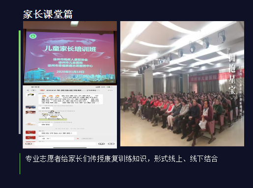 这五年以来志愿服务项目,共计辐射淮海经济区18县市,服务3250个家庭,走进16所幼儿园,25家社区,开展线上、线下家长课堂150余次,为5000余名儿童送去关爱,帮助500余名儿童走进校园。