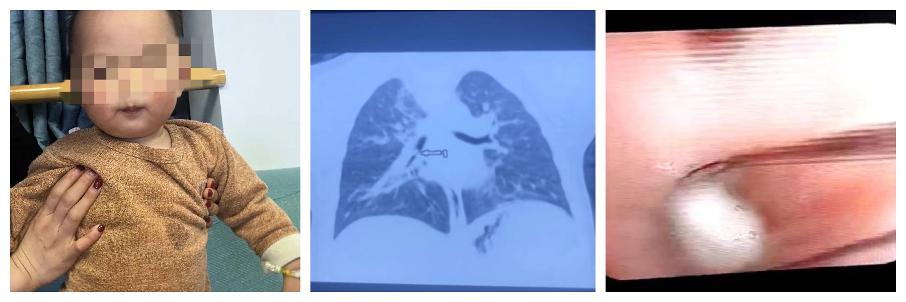 2月7日,呼吸内一科迎来了一位气喘半月的小病人,当地医院考虑为支气管哮喘,予气管三维CT检查中发现右肺下叶支气管内斑片状稍高密度影,怀疑异物,建议徐州市儿童医院进一步确诊,呼吸内一科副主任医师刁敏立即安排住院。