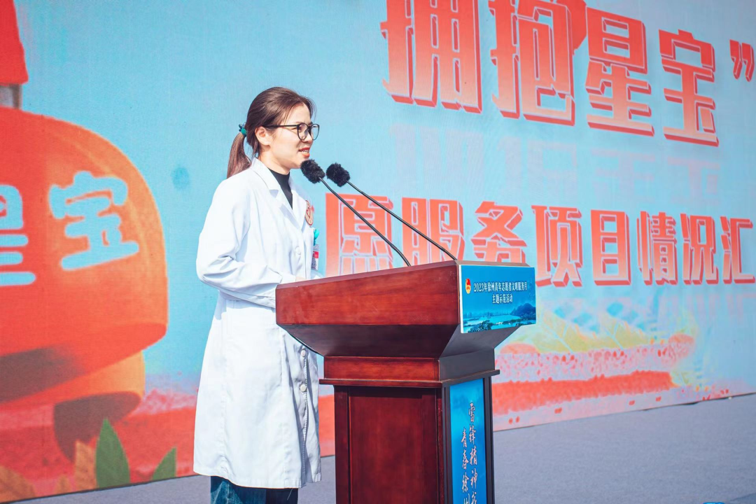 项目展演环节,“拥抱星宝”志愿服务项目在2022年获得全国第六届中国青年志愿大赛铜奖,2022年江苏省青年志愿大赛一等奖。作为此次项目负责人徐州市儿童医院康复治疗师巩甜甜代表团队向领导们展示志愿服务的背景、实施方案流程、项目成效等,此项目得到领导的一致认可。