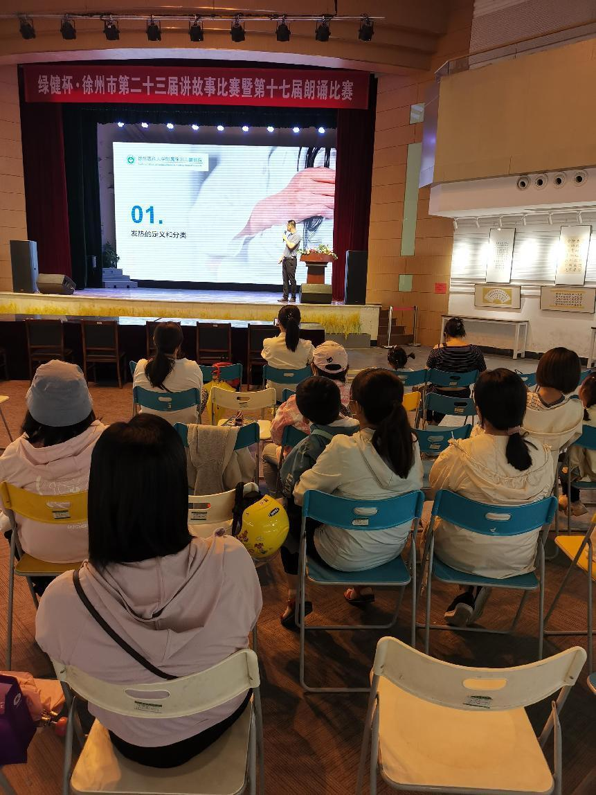 6月4日上午,我院与徐州市青少年宫合作开展的儿童健康促进系列科普讲座第五期,在市青少年宫一楼活动大厅开讲,急诊科朱峰主任为观众带来了主题为“儿童发热及相关急症处理”的精彩讲座。讲座从什么叫发热、发热对身体的影响、发热的正确处理及发热相关的急症处理等向家长进行了科普宣教。4月份以来我院与市青少年宫合作陆续开展了一系列讲座,下周将举办本次活动最后一期讲座,主题为“全为生命,“救”在身边——心肺复苏”。