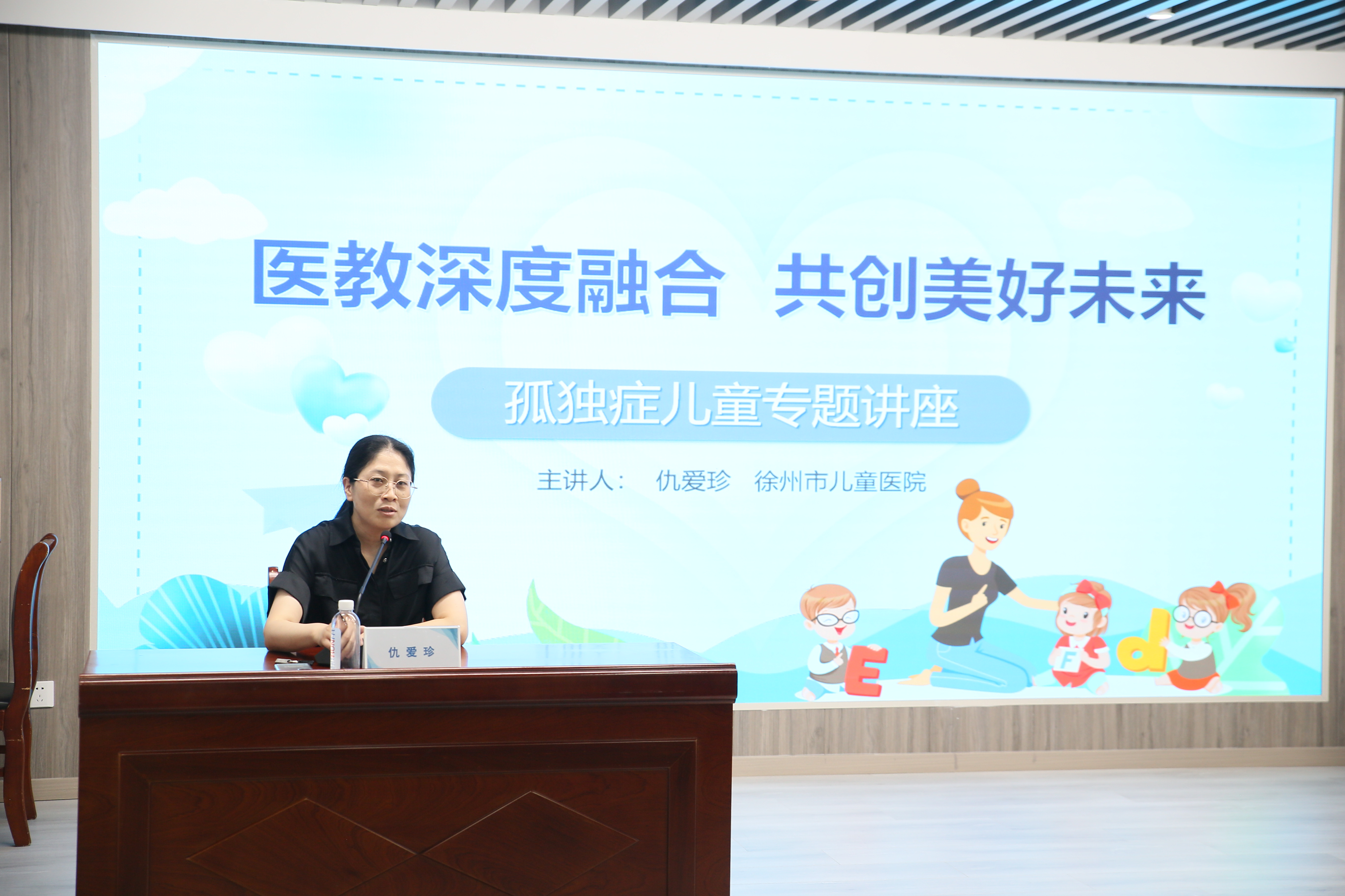 活动中,鼓楼区教育局基教科马媛科长表示,希望徐州市儿童医院专家能够对鼓楼区的特殊教育工作给予医疗技术指导,帮助特殊儿童更好融入校园生活。儿童医院杨院长也表示,希望通过学校与医院的进一步合作,将根据学生、家长、老师的需求,组织开展诊断评估、专题培训和研讨活动,共同关爱特殊儿童。签约活动后,康复科仇爱珍主任针对孤独症儿童开展专题讲座,为现场参会的鼓楼区特殊儿童教育工作者答疑解惑。