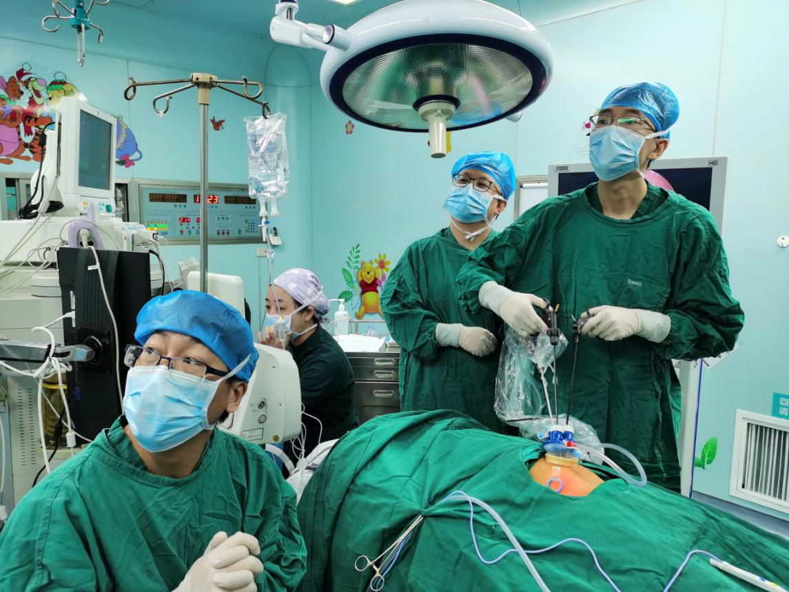 自去年以来徐州市儿童医院普外科逐步开展了无疤痕单通道腹腔镜技术用于治疗小儿外科相关疾病,包括急性阑尾炎、腹股沟斜疝、梅克尔憩室,卵巢肿瘤,先天性巨结肠等,目前均取得了良好的治疗效果,赢得了家长们的一致好评。1月前在张宏伟、曹慧主任及张翔副主任医师共同努力下,历经5小时完成了一例5月龄长段型先天性巨结肠的手术,手术顺利,术中切除病变肠管50%以上,患儿术后恢复快,无疤痕,并很快患儿可以自主排便;截止目前,孙邡副主任医师及张翔副主任医师分别已完成多例无疤痕单通道腹腔镜辅助下梅克尔憩室切除手术,救治了因梅克尔憩室大出血的危重患儿。以上只是其中一些代表,这些手术的顺利完成,标志着徐州市儿童医院儿外科微创手术技术得以进一步提升,让淮海经济区更多的患儿受益。