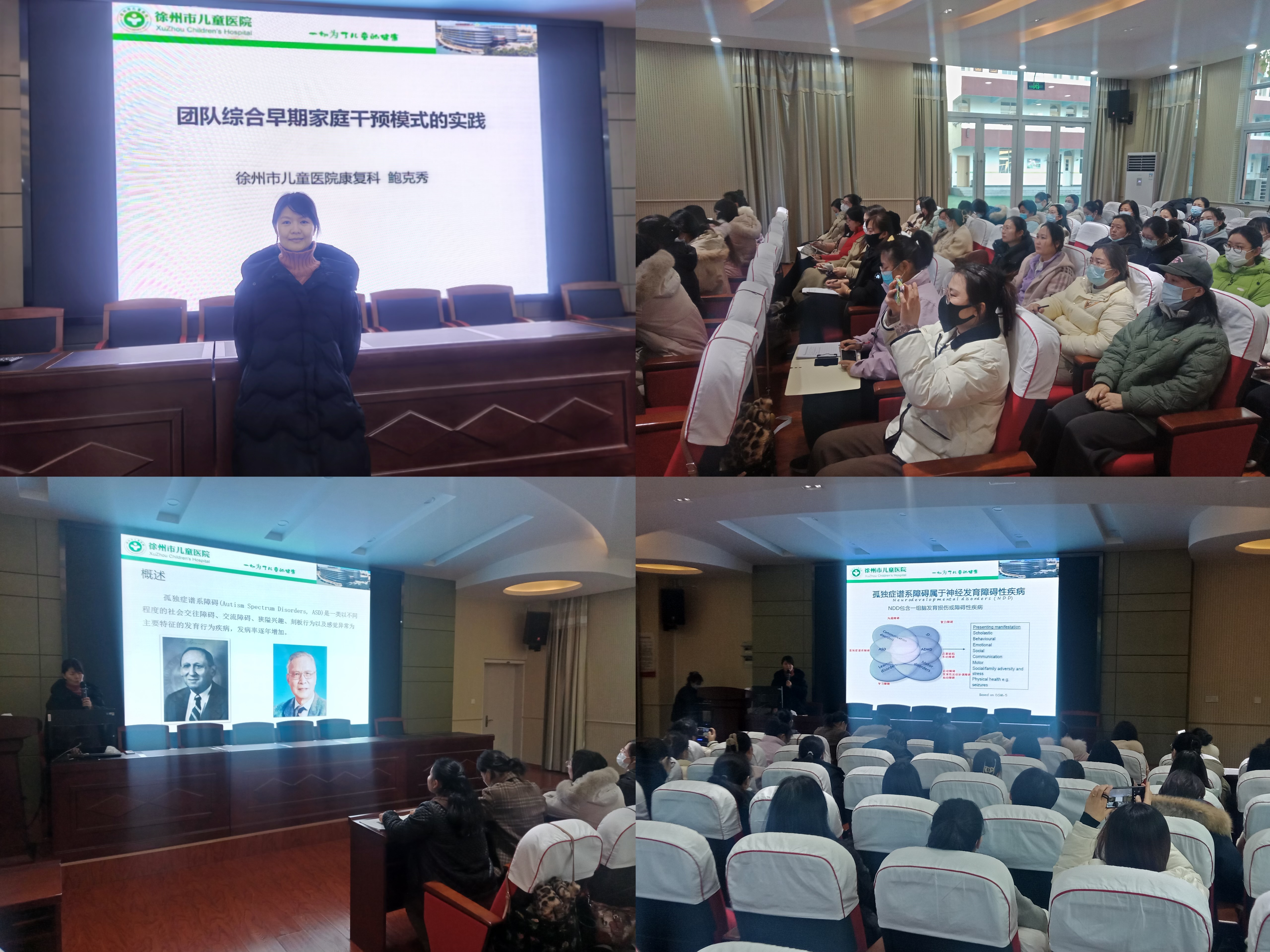 徐州市儿童医院康复科医师鲍克秀以《团队综合早期家庭干预模式的实践》为题,讲解了孤独症谱系障碍(ASD)的概述、背景、干预实施流程、IEP制定、个性化核心课程等医学专业内容,并且还为教师们在教学中遇到的各种问题答疑解惑。鲍医师着重讲述了孤独症康复干预流程,包括医学诊断、系统评估、康复干预、融合教育等众多环节。通过理论讲解,方法示范、案例分享等途径,使教师们更加了解并掌握孤独症的社会生活能力、家庭感觉统合等训练方法和技巧。本次活动系统地普及了孤独症的最新诊疗进展和行业标准,共同探讨了如何更好地帮助孤独症儿童成长,进一步提升了特教中心老师的专业素养。