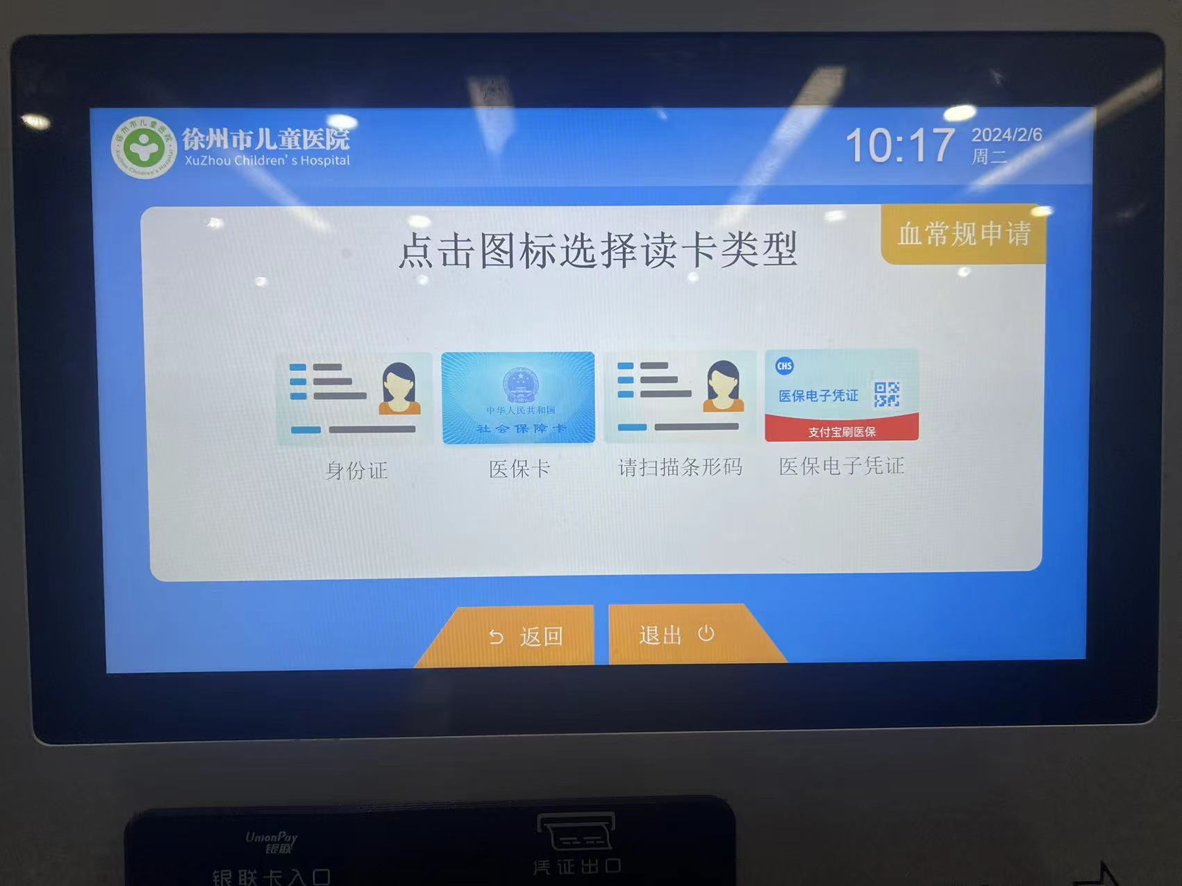 1.患儿家属准备好已在我院建档的患儿医保卡、身份证或条形码,自助机上选择血常规申请,如图所示: