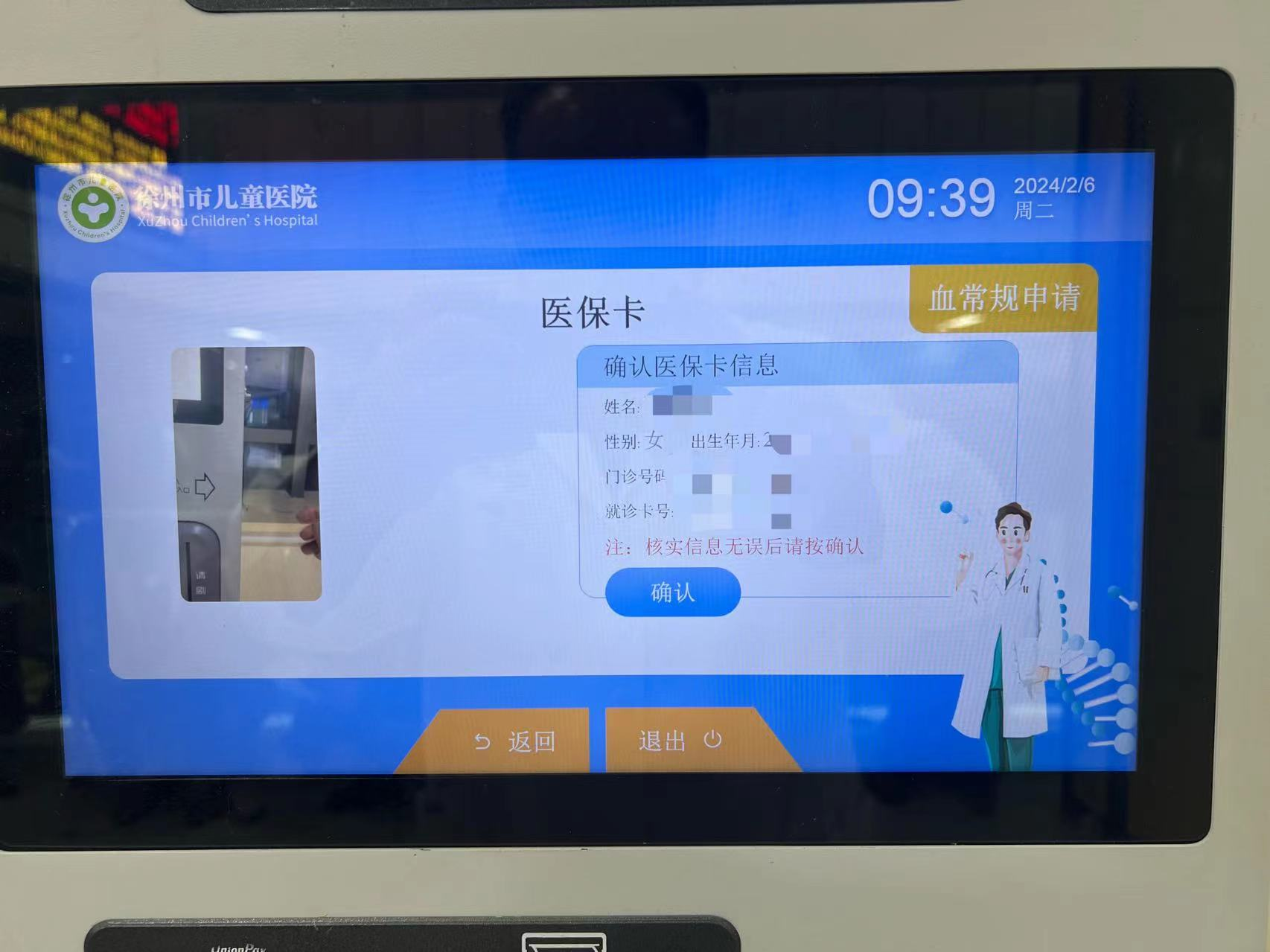 4.确认患儿就诊信息,如信息无误请按确定键,如图所示: