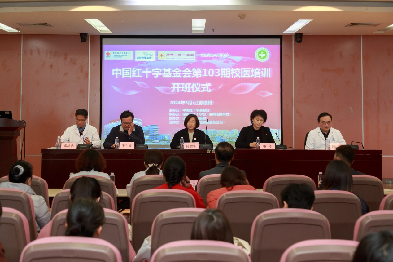 为落实《中国红十字会总会教育部关于进一步加强和改进新时代学校红十字工作的通知》、《教育部办公厅中国红十字会总会办公室关于进一步推进学校应急救护工作的通知》、《省教育厅和省红十字会关于在全省学校开展“救在身边·校园守护”行动的通知》,2024年3月25日,由中国红十字基金会主办,徐州市红十字会、徐州市教育局承办,徐州市儿童医院协办的全国第103期校医培训正式开班。