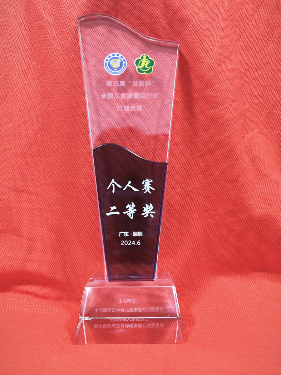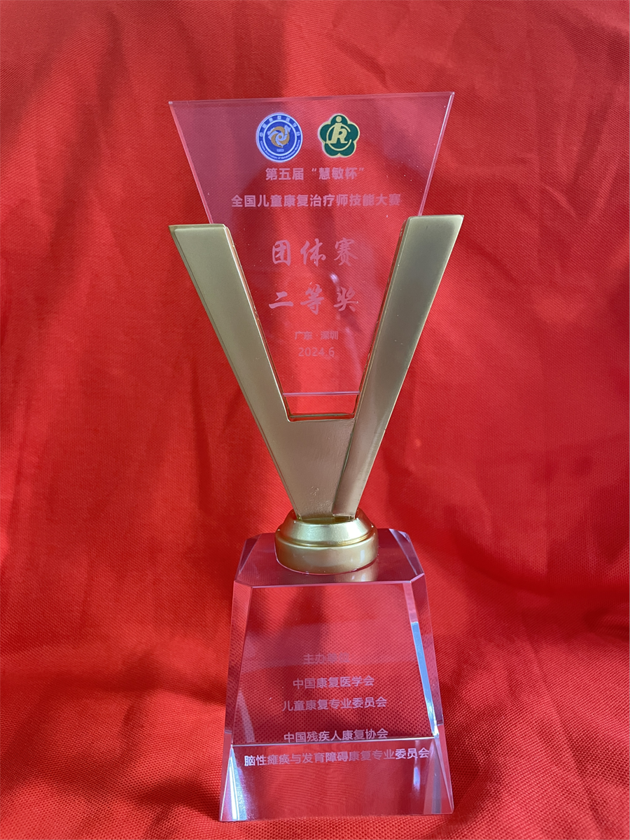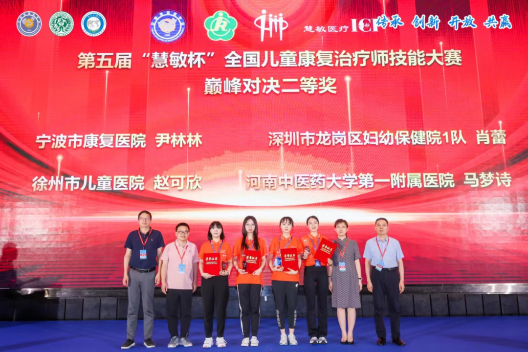第五届“慧敏杯”全国儿童康复治疗师技能大赛吸引了来自全国各地的111支治疗师队伍,我院康复科治疗室责任组长魏文娟(领队)、赵可欣(PT)、叶梦寒(OT)、李芹(ST)4人参加了大赛。经过预赛竞争激烈的理论考试及视频案例筛选,我院代表队以第8名的好成绩脱颖而出,顺利进入决赛,在决赛中治疗师团队经过精彩的PPT汇报和紧张的提问环节,最终以第六名的好成绩获得综合团体二等奖,展现了我院治疗师的团队风采。最后赵可欣进入巅峰对决挑战赛,沉着冷静,敏捷应答,最终荣获个人二等奖。