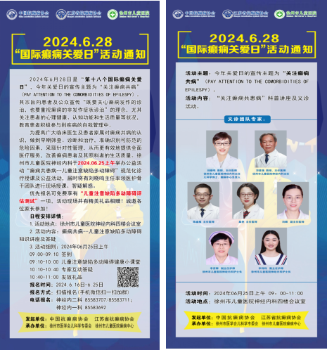 徐州市医学会儿科学专业委员会、徐州市儿童医院癫痫中心积极响应中国抗癫痫协会号召,于6.25日上午进行癫痫共病为主题的科普知识讲座及现场义诊答疑活动。