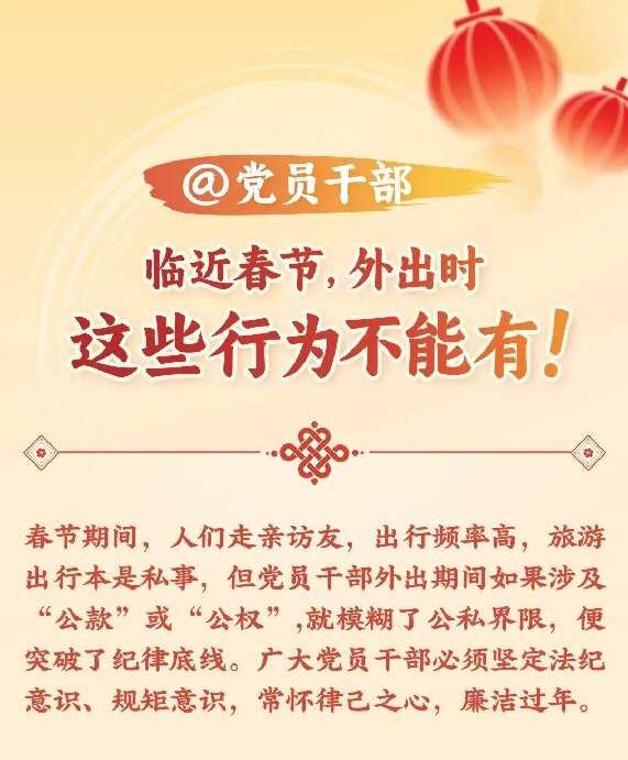 @党员干部 临近春节,外出时这些行为不能有!