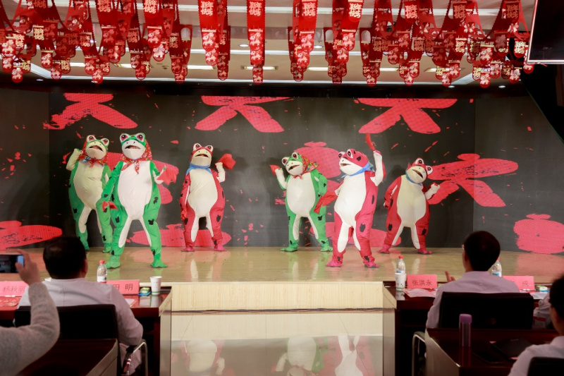 演出在内科一组舞蹈串烧《福蛙送春》中拉开序幕,灵动可爱的福蛙传递了“春回大地、生机盎然”的年味,富有动感的旋律和轻快滑稽的动作,展现了白衣天使的无限活力。