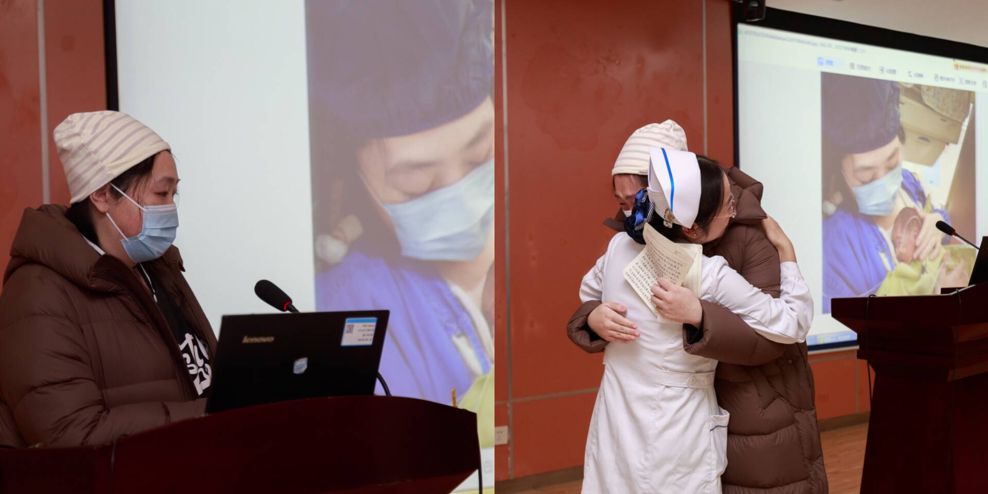 活动现场邀请了两位早产儿家长进行了分享交流,一位是在院的出生孕周28周的宝妈,她讲述了作为一名早产家长的心路历程,过程几度哽咽惹得在座的家长及医务人员也潸然泪下。她说面对宝宝的提前到来感到非常的惊慌失措、自责无助,在NICU全体医护人员的共同努力下宝宝病情趋于稳定后进行了“袋鼠式护理”,看到小小的人儿伏在她的胸前,心率和血氧饱和度变得比任何时候都要平稳。现在的她无比的坚定信心,相信在医护和家长的共同努力下宝宝会越来越好。
