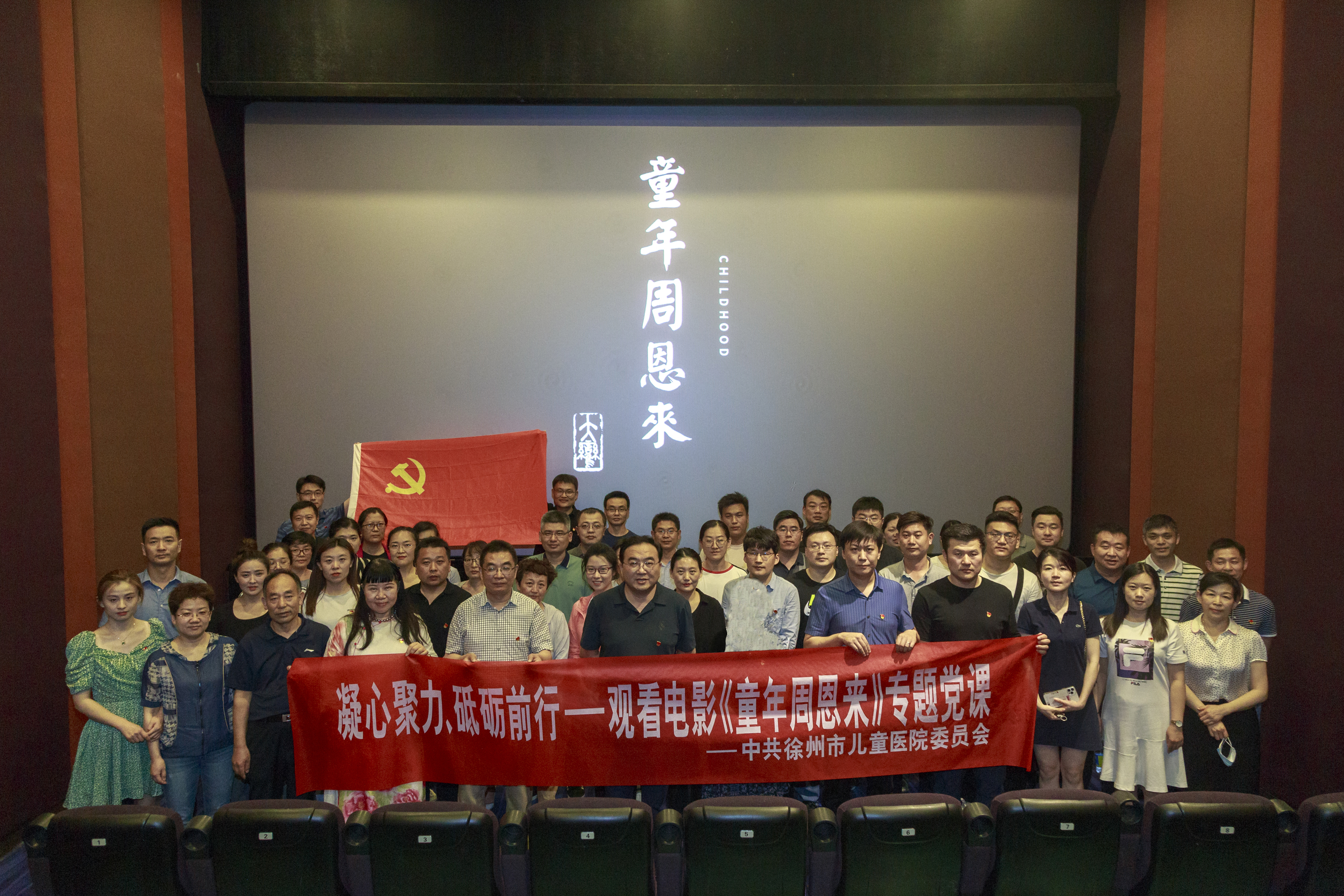 为庆祝中国共产党成立100周年,江苏省重点献礼影片《童年周恩来》于6月1日起在全国公映。2021年6月9日下午,徐州市儿童医院在党委书记田明带领下,组织53名党员干部在徐州市中山堂影院观看此片。电影《童年周恩来》为深入开展的党史学习教育再添生动影视教材,为引导广大党员坚定理想信念再添丰富的精神养料。